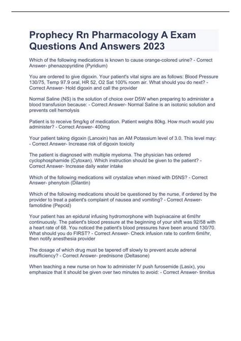 Read PROPHECY RN PHARMACOLOGY EXAM ANSWERS Library Binding